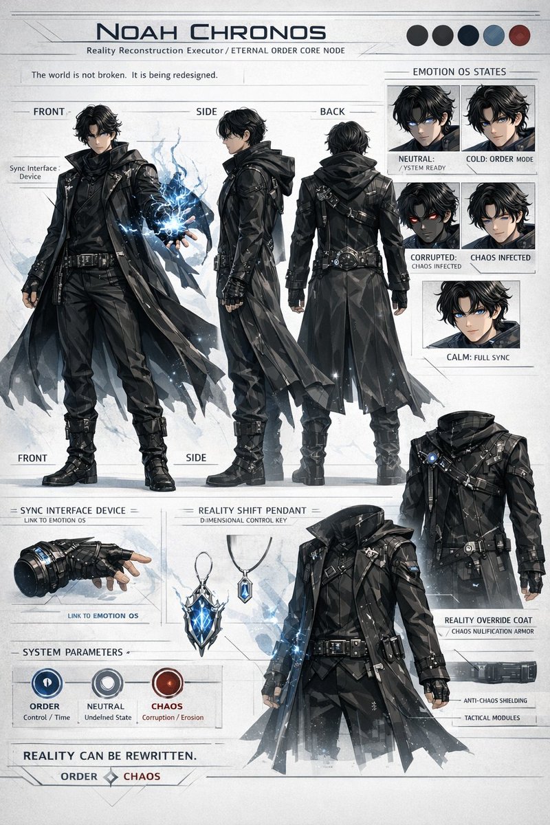GPT Image 2 AI image example generated with this reusable CDance AI prompt: Generates a highly detailed, multi-panel character design sheet featuring turnarounds, expression variants, and prop close-ups.