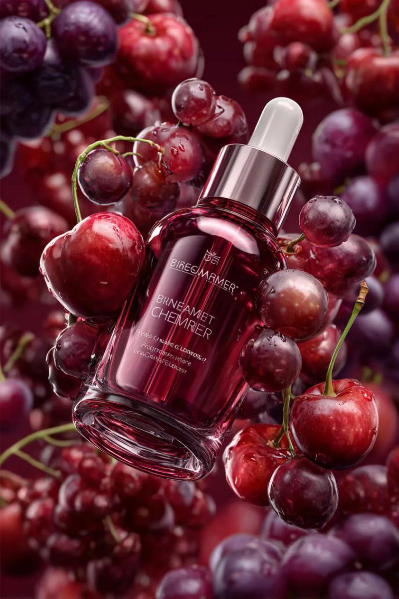 Prompt1 : 3D floating cosmetic bottle, gradient from juicy strawberry red to fresh kiwi green, modern white typography, background with strawberries and kiwi slices, bright airy lighting --ar 2:3 --stylize 400 Prompt 2: 3D floating cosmetic bottle, gradient from cherry blossom pink to lychee white, modern white typography, background with cherry blossoms and lychee fruits, soft airy lighting --ar 2:3 --stylize 400 Prompt 3: 3D floating cosmetic bottle, gradient from creamy coconut white to pineapple yellow, modern white typography, background with coconut halves and pineapple rings, tropical airy lighting --ar 2:3 --stylize 400 Prompt 4: 3D floating cosmetic bottle, gradient from deep cherry red to grape purple, modern white typography, background with cherries and grapes, glossy airy lighting --ar 2:3 --stylize 400 Prompt 5: 3D floating cosmetic bottle, gradient from cherry blossom pink to lychee white, modern white typography, background with cherry blossoms and lychee fruits, soft airy lighting --ar 2:3 --stylize 400