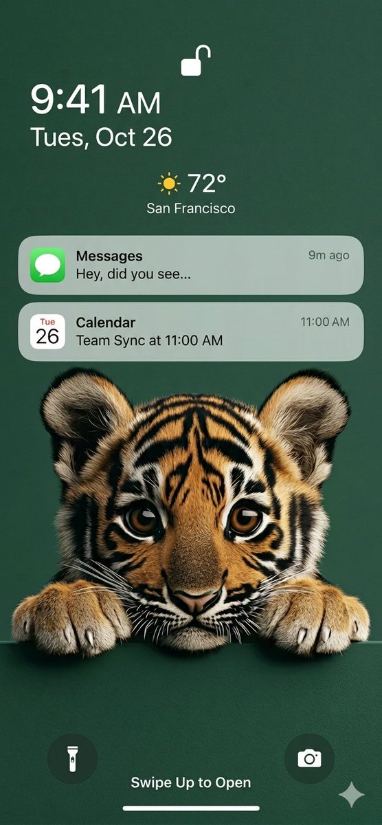 Nano Banana Pro AI image example generated with this reusable CDance AI prompt: A detailed prompt for generating a high-resolution, photorealistic wildlife portrait of a baby tiger cub for a lock screen wallpaper,…