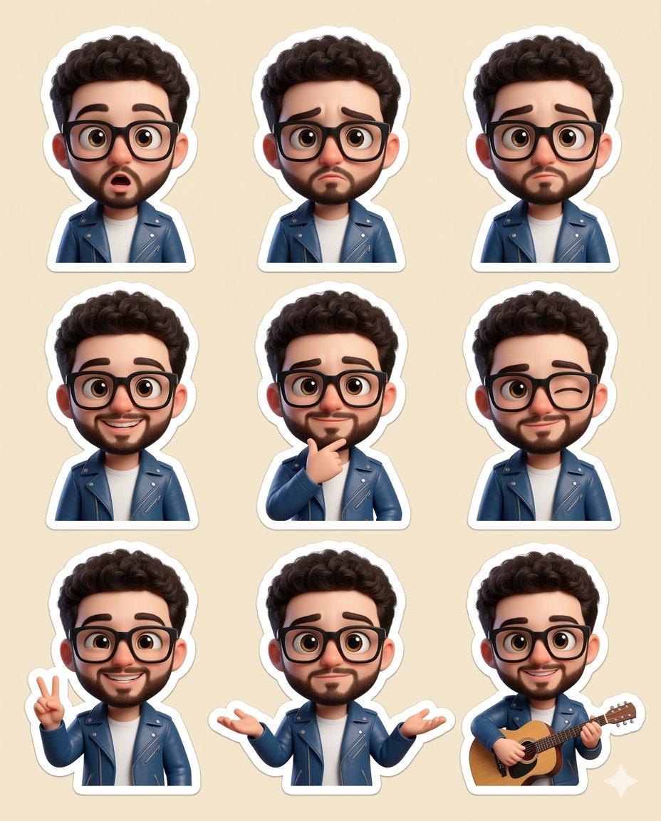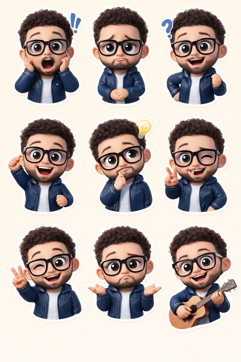 Nano Banana Pro AI image example generated with this reusable CDance AI prompt: A JSON prompt for Nano Banana Pro to generate an ultra-realistic 3D chibi sticker set of a character (based on a reference image) in the…
