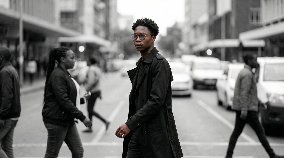 Hyperrealistic and cinematic street portrait of an elegant young man crossing a busy street, dressed in a {argument name="clothing item" default="black trench coat"} and dark attire. Serious and confident expression. Shallow depth of field. Blurred pedestrians and traffic in...Related Nano Banana Pro Prompts