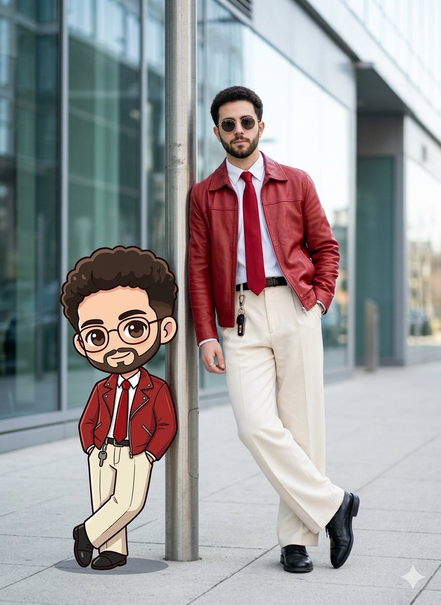 "description": "Stylish man, same face as base image, confident relaxed vibe",