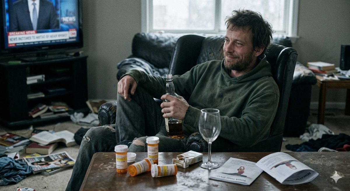 "A man who loves disaster. At no point would he want to make the effort to feel better, even though all he would need to do is increase his antidepressant dose or do yoga"