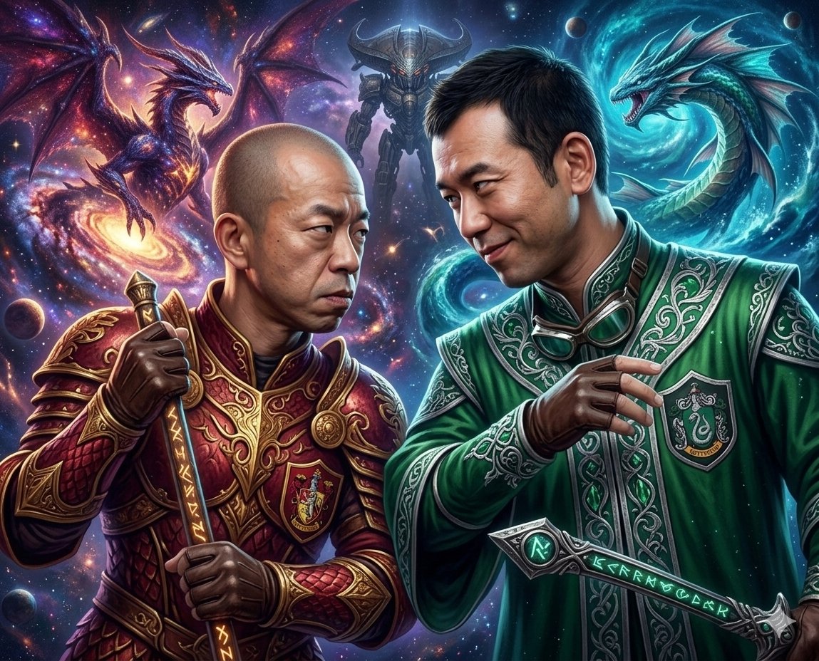 Nano Banana Pro AI image example generated with this reusable CDance AI prompt: A prompt for Nano Banana Pro (Gemini 3 Pro Image) to generate a fantastical battle scene inspired by Final Fantasy, featuring two…