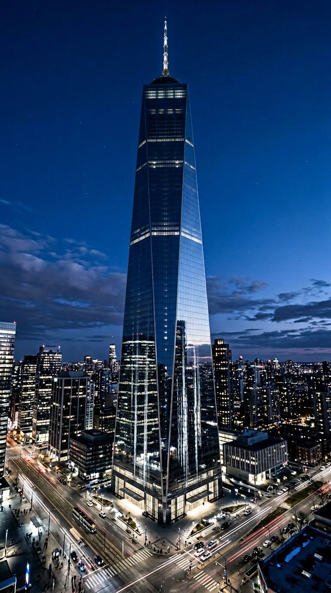 A soaring futuristic skyscraper tower dominating an urban skyline, its facade composed of vast seamless panels of glass and polished steel reflecting the city below. The tower tapers elegantly toward the sky with clean geometric lines and minimal ornamentation. Surrounding buildings recede in the distance, emphasizing the tower's monumental scale. The scene is viewed from a slight low angle, capturing the full height of the structure against an open sky. Reflections of city lights ripple across the glass surface in long vertical streaks., in a minimal style, viewed from a low-angle, blue-hour lighting, at blue-hour, featuring cool-tones, glass-blue, with glass, mirror-like glass reflections effects. A breathtaking futuristic cityscape at night, towering skyscrapers with glowing neon lights and holographic displays stretching into the sky, flying vehicles weaving between buildings, the camera performs a slow sweeping panoramic rotation revealing the full scale of the city, moving gracefully from left to right across the skyline, city lights reflecting off wet streets below, volumetric fog drifting between buildings, cinematic wide shot with dramatic depth and scale, vibrant blues and purples dominate the color palette