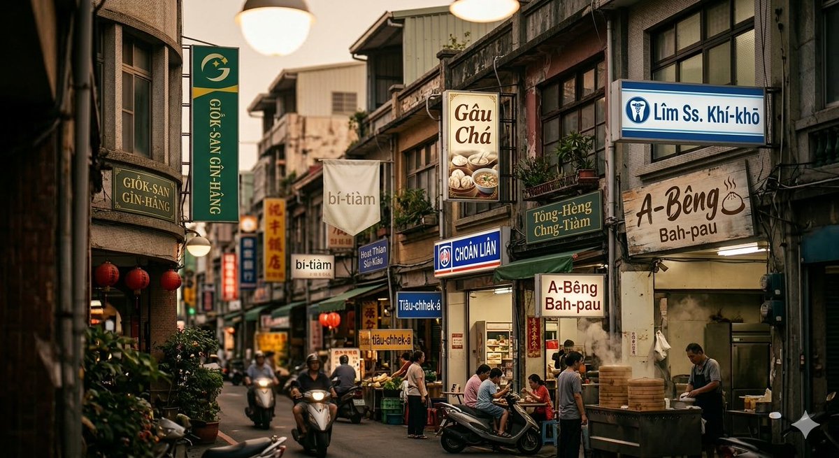 Nano Banana Pro AI image example generated with this reusable CDance AI prompt: The user tested Nano Banana 2's ability to generate a Taiwanese streetscape where all signs are replaced with Romanized Taiwanese text.…