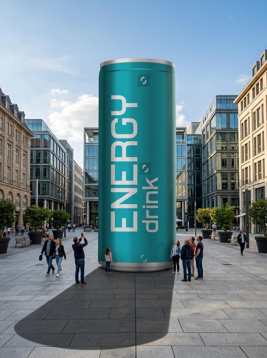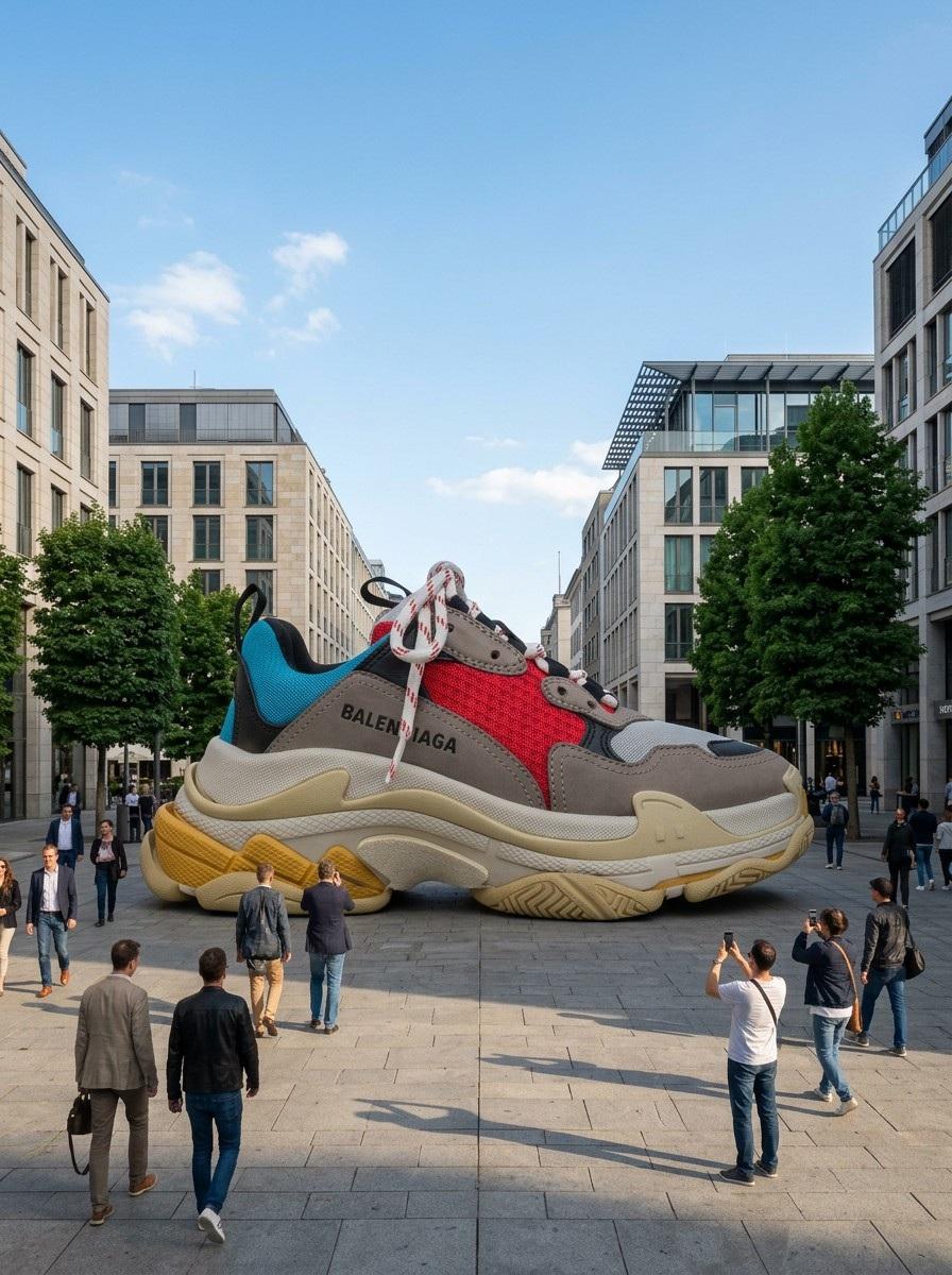 Shot from street level, slightly looking up at the giant product. Wide angle 24mm lens, f/8. The scene must look believably real — as if someone took a photo of an actual giant product placed in a city. Photorealistic street photography, documentary style.Related Nano Banana Pro Prompts