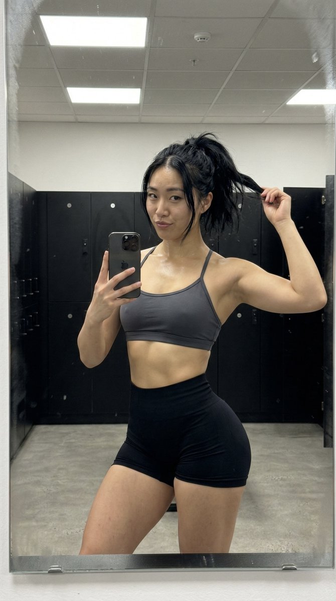 "style": "real iphone gym mirror shot, natural skin texture, subtle grain, mobile HDR"