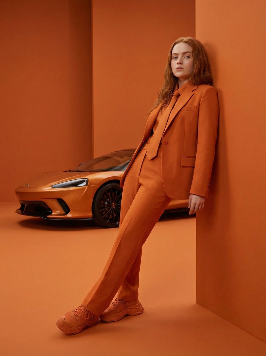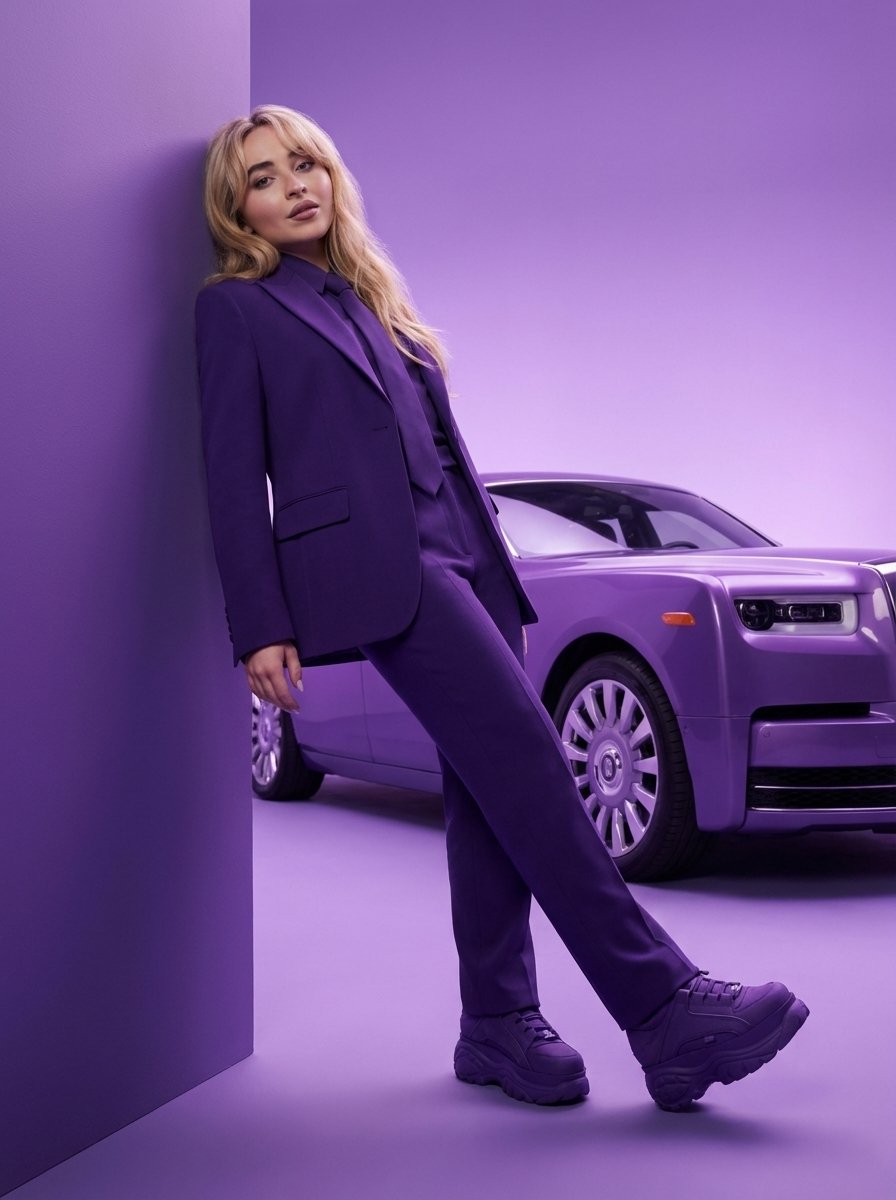 High-Fashion Editorial Portrait with Monochrome Purple Aesthetic