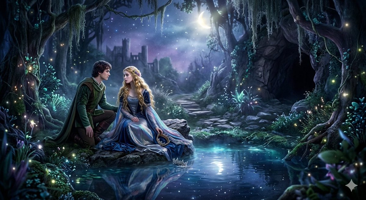 Nano Banana Pro AI image example generated with this reusable CDance AI prompt: A prompt for generating a fantastical image based on Debussy's opera 'Pelléas et Mélisande,' focusing on the themes of the opera and the…