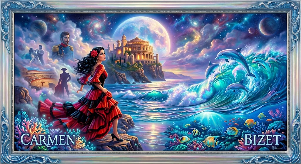 Nano Banana Pro AI image example generated with this reusable CDance AI prompt: A simple image generation prompt for Nano Banana Pro (Gemini 3 Pro Image) combining the opera 'Carmen' by Bizet with the style of Thomas…
