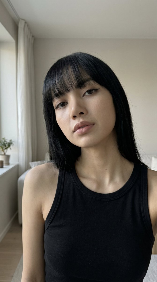 "identity": "{argument name="celebrity inspired" default="BLACKPINK Lisa"} inspired, sharp feline eyes, straight bangs, smooth skin",