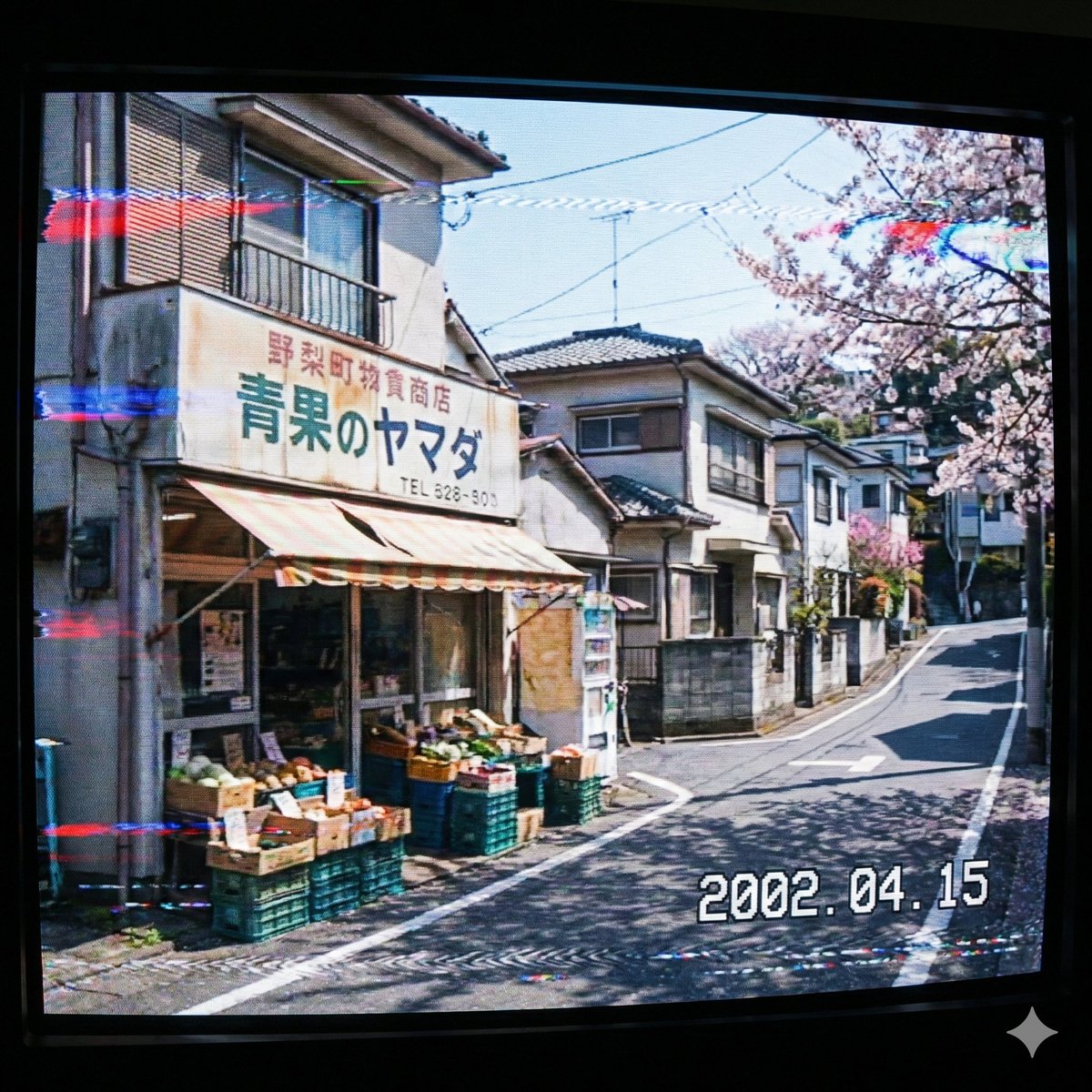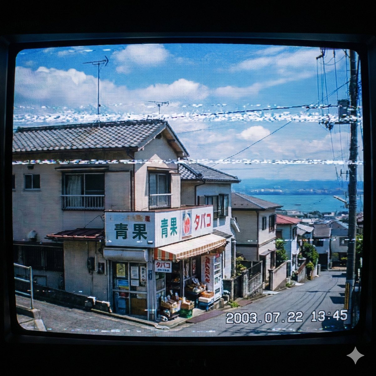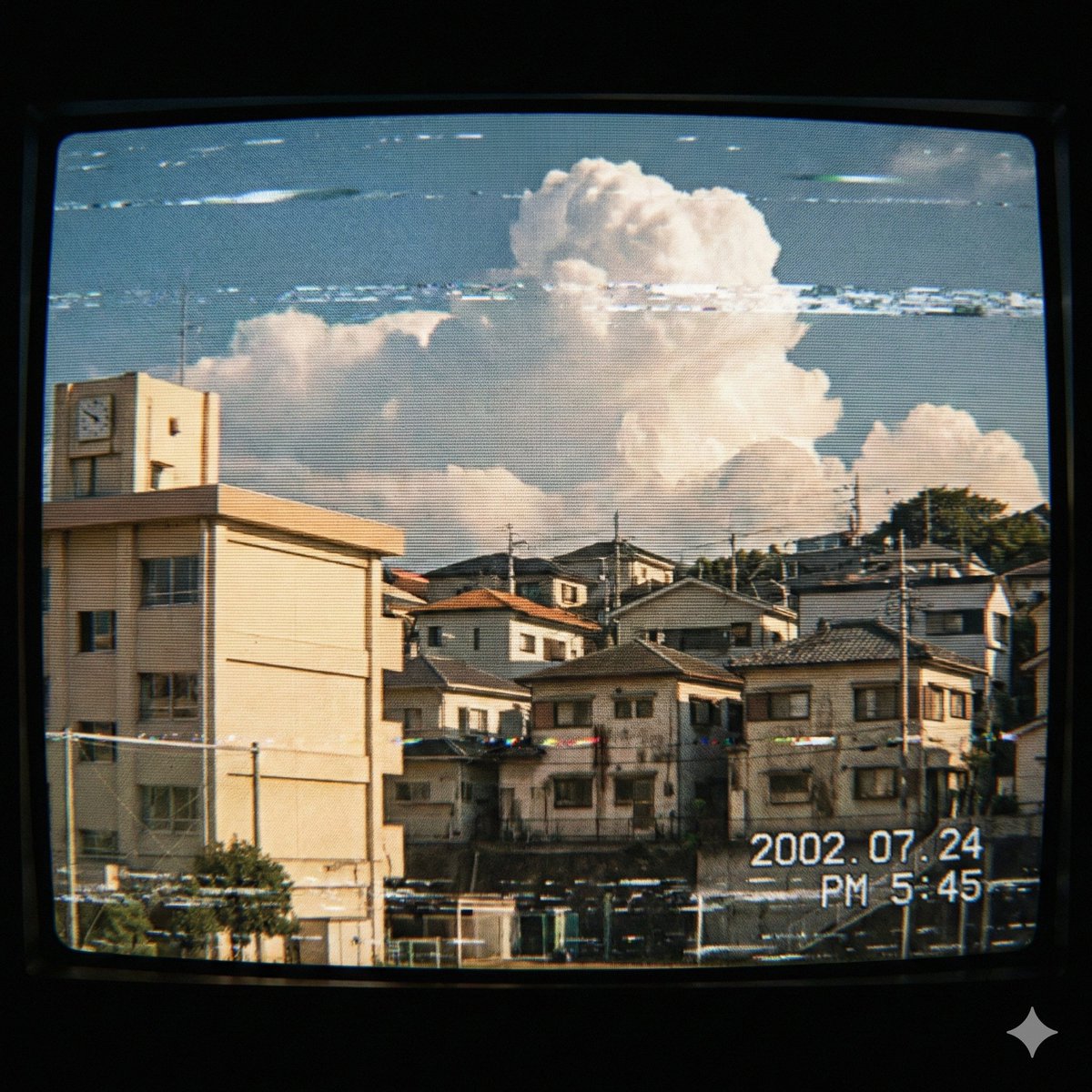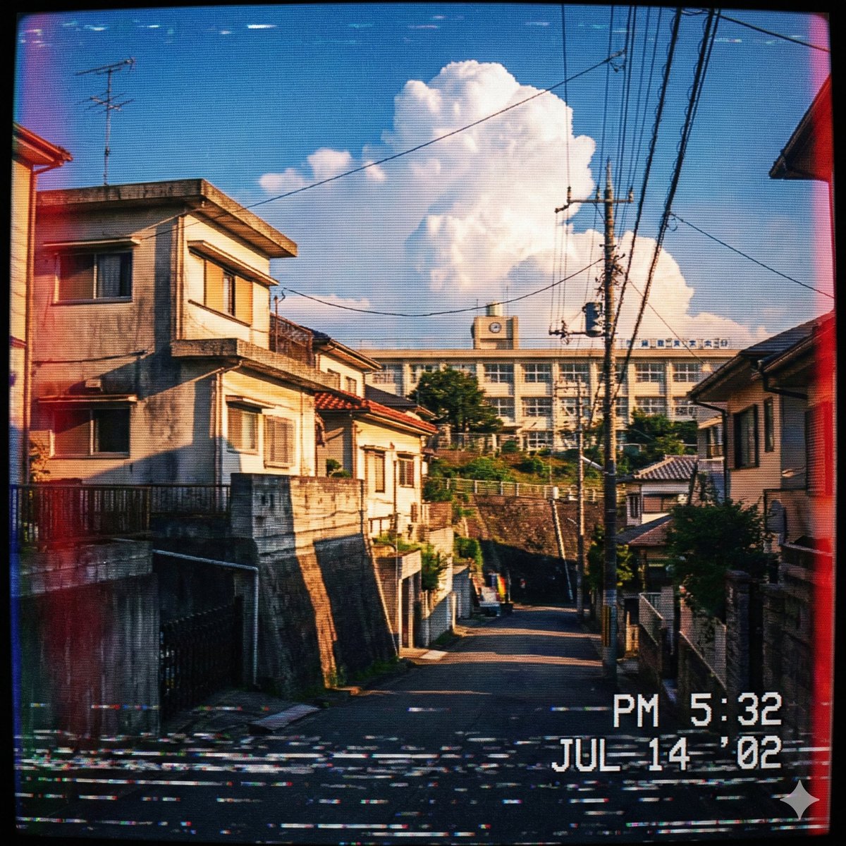 Nano Banana Pro AI image example generated with this reusable CDance AI prompt: A prompt for Nano Banana Pro (via Google Gemini 3.1) to generate an image of a Japanese suburb with the atmosphere of an old 2000s footage.