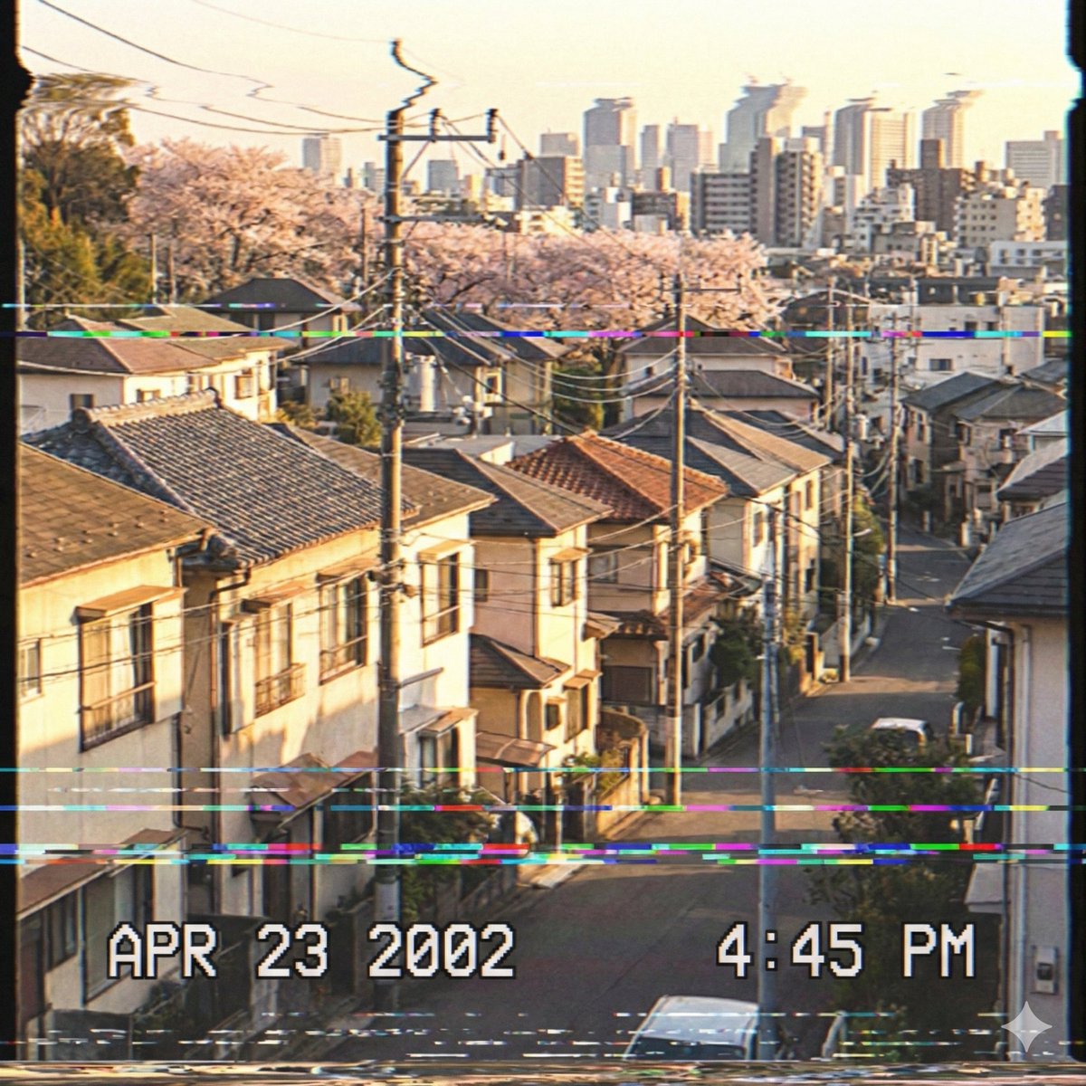 Nano Banana Pro AI image example generated with this reusable CDance AI prompt: A prompt for Nano Banana Pro (via Google Gemini 3.1) to generate an image of a Japanese suburb with the atmosphere of an old 2000s footage.