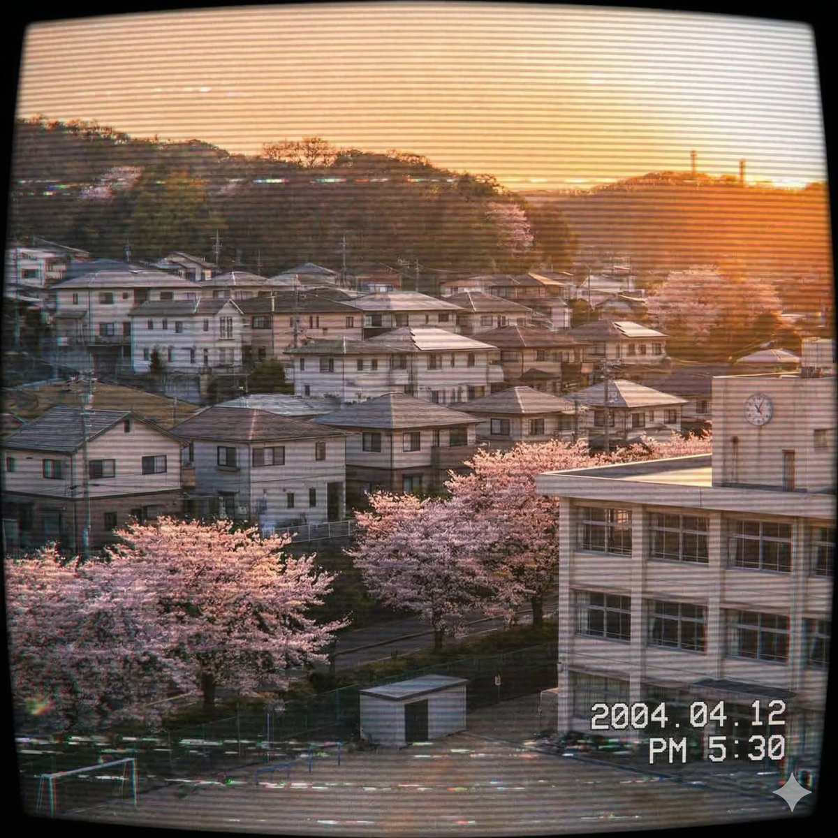 a Japanese suburb in the the 2000s atmosphere that like an old footage