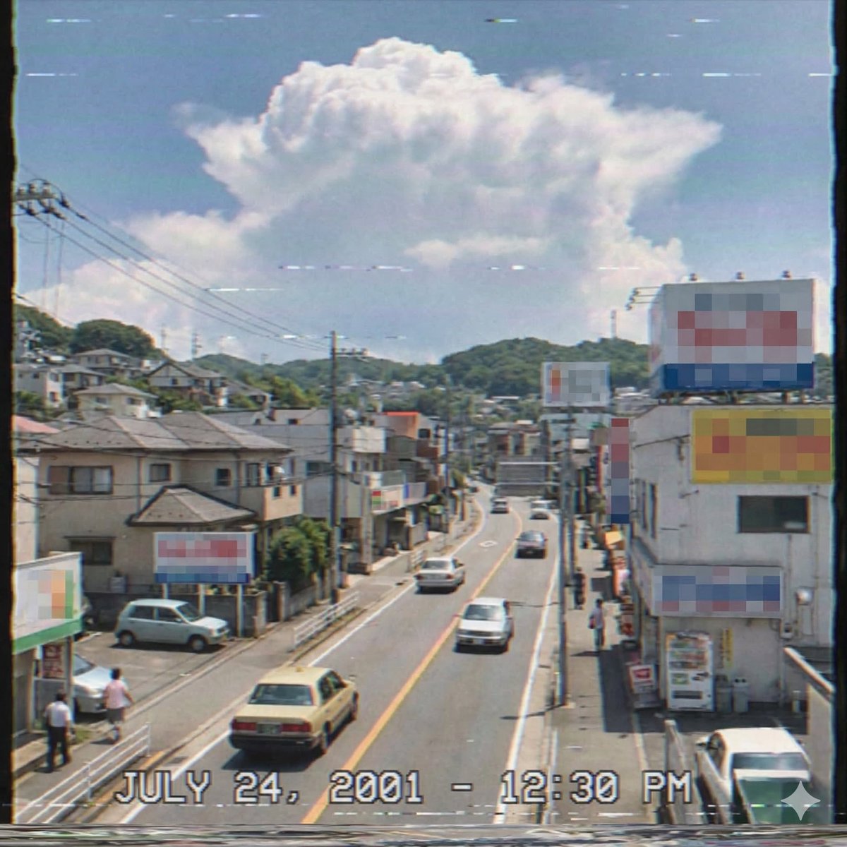 A prompt used with Nano Banana Pro via Google Gemini 3.1 to generate images depicting a Japanese suburb with the atmosphere of the 2000s, styled like old video footage.