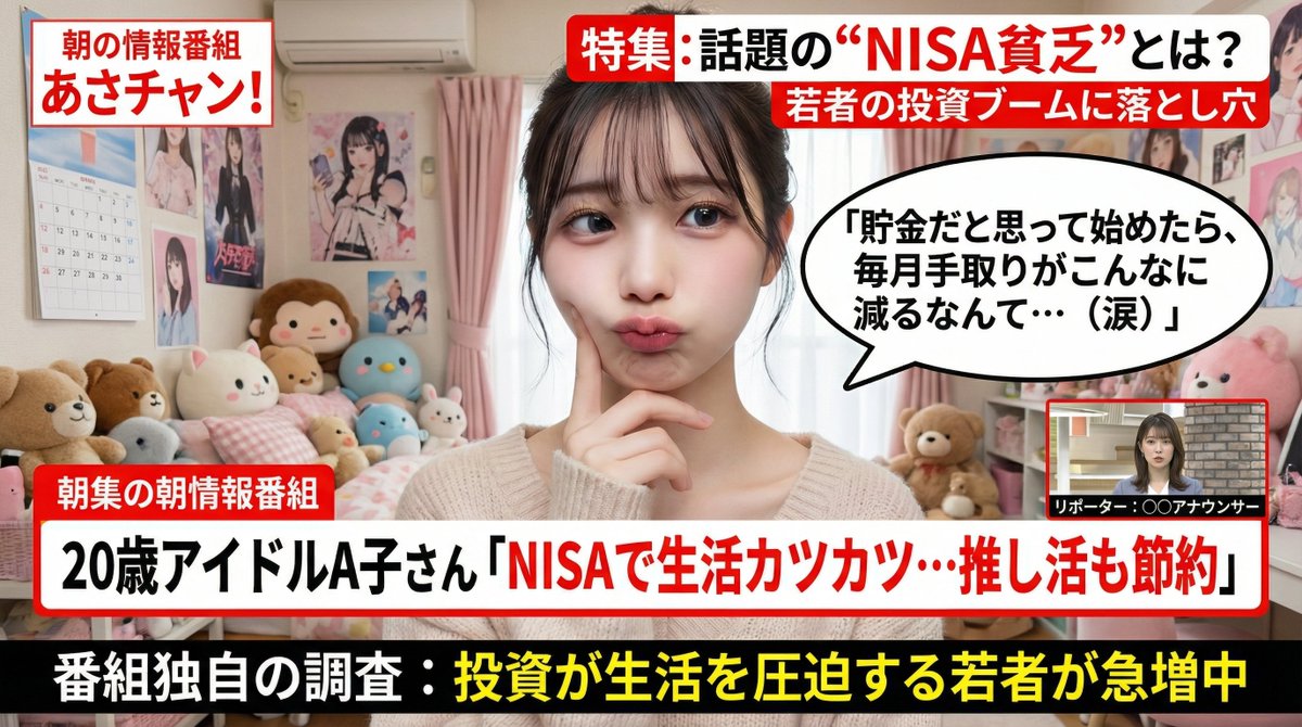 {argument name="theme" default="NISA poverty. Morning news program. A 20-year-old female idol being interviewed at a woman's home."}Related Nano Banana Pro Prompts