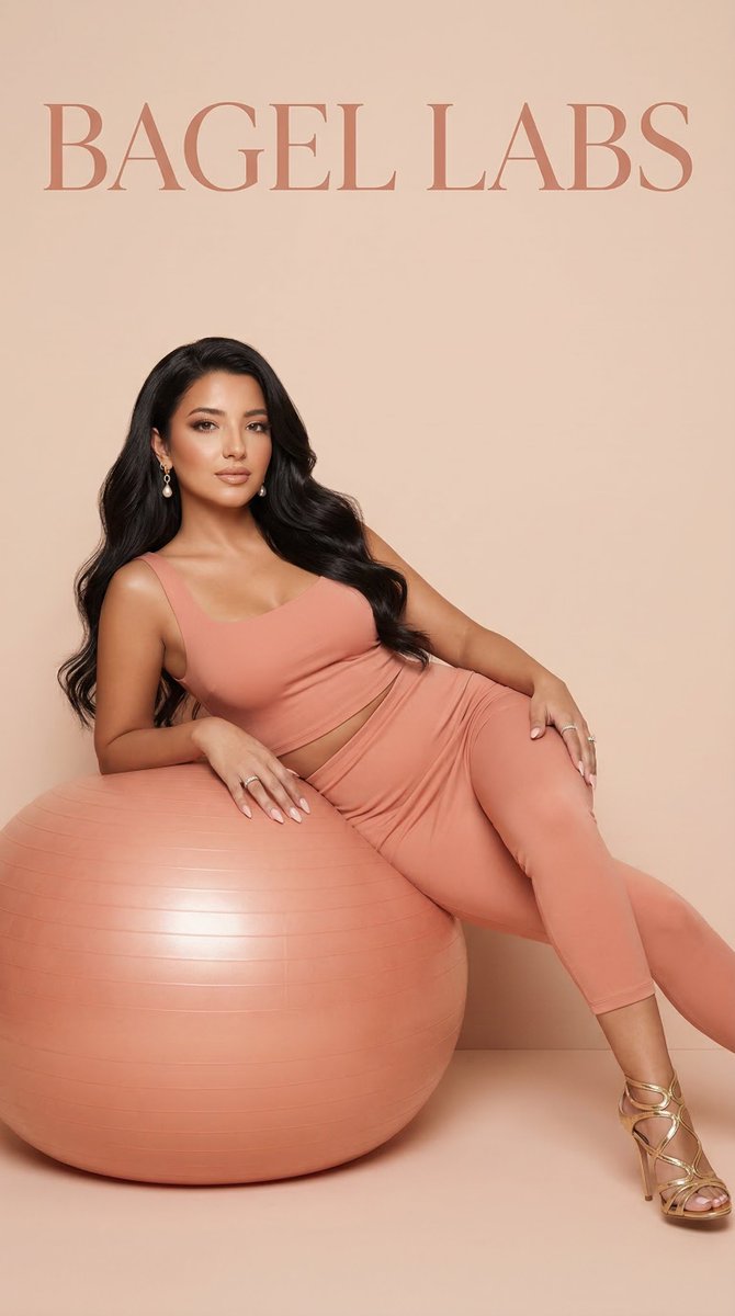 "background": "minimal clean studio background in soft salmon-blush tone with large BAGEL LABS text at the top",