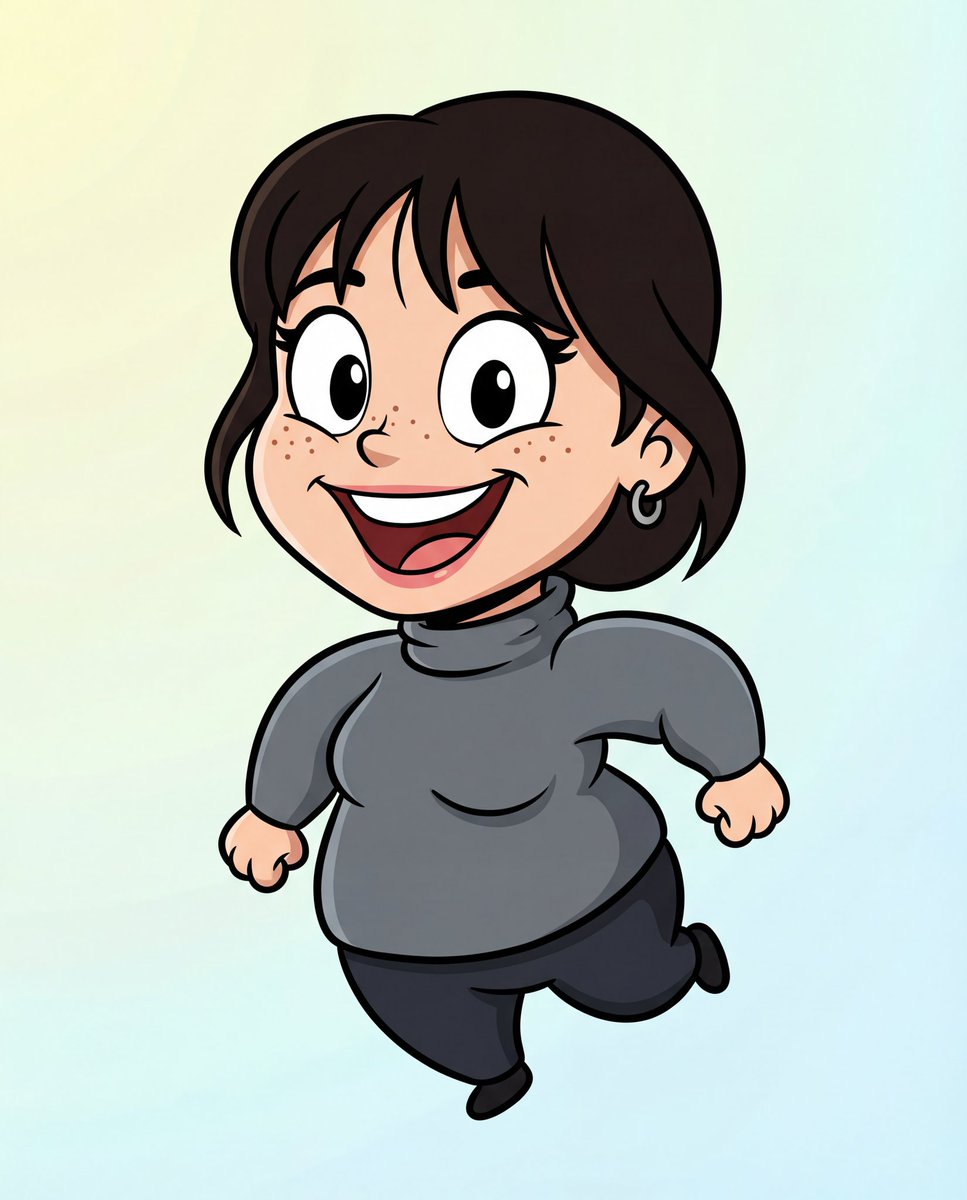 Create a stylized 2D cartoon illustration inspired by classic Looney Tunes animation. Preserve exact facial likeness and clothing while adapting the character with oversized expressive eyes, bold outlines, and playful squash-and-stretch proportions. Aspect ratio: 4:5