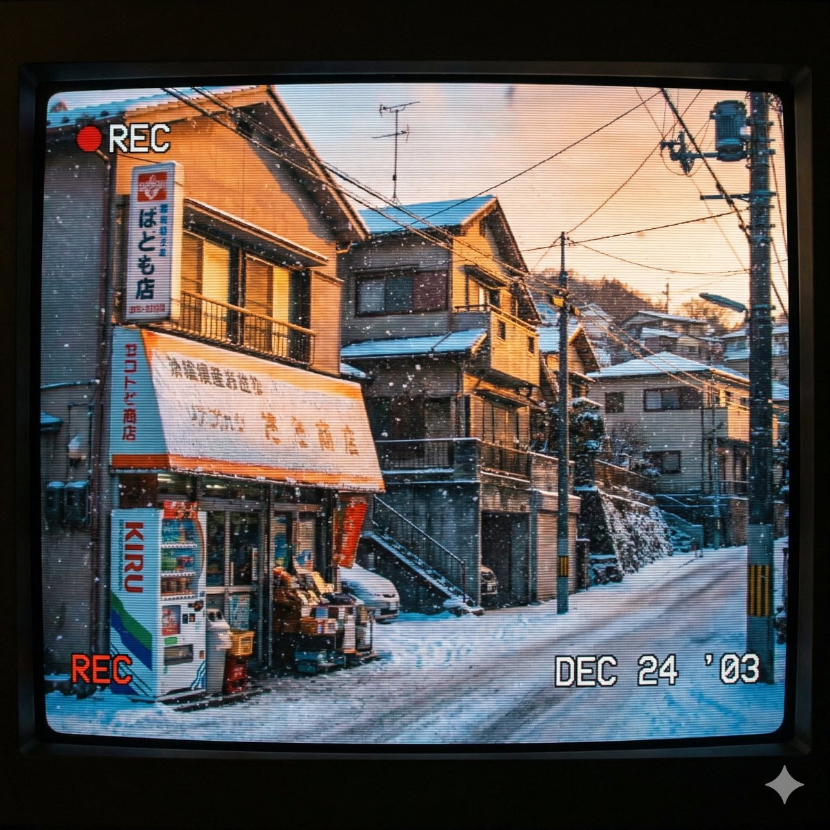 Nano Banana Pro AI image example generated with this reusable CDance AI prompt: Generates a nostalgic visual of a Japanese suburb with the aesthetic of old video footage from the 2000s.