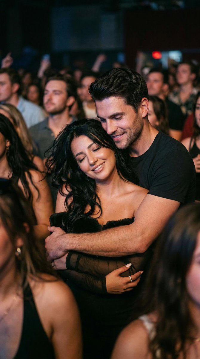 "notes": "Ultra photoreal candid moment of a couple at a live concert, now fully in love, standing close and wrapped around each other in the crowd. Must feel warm, intimate, real, and emotionally full, like a spontaneous concert memory, not staged."