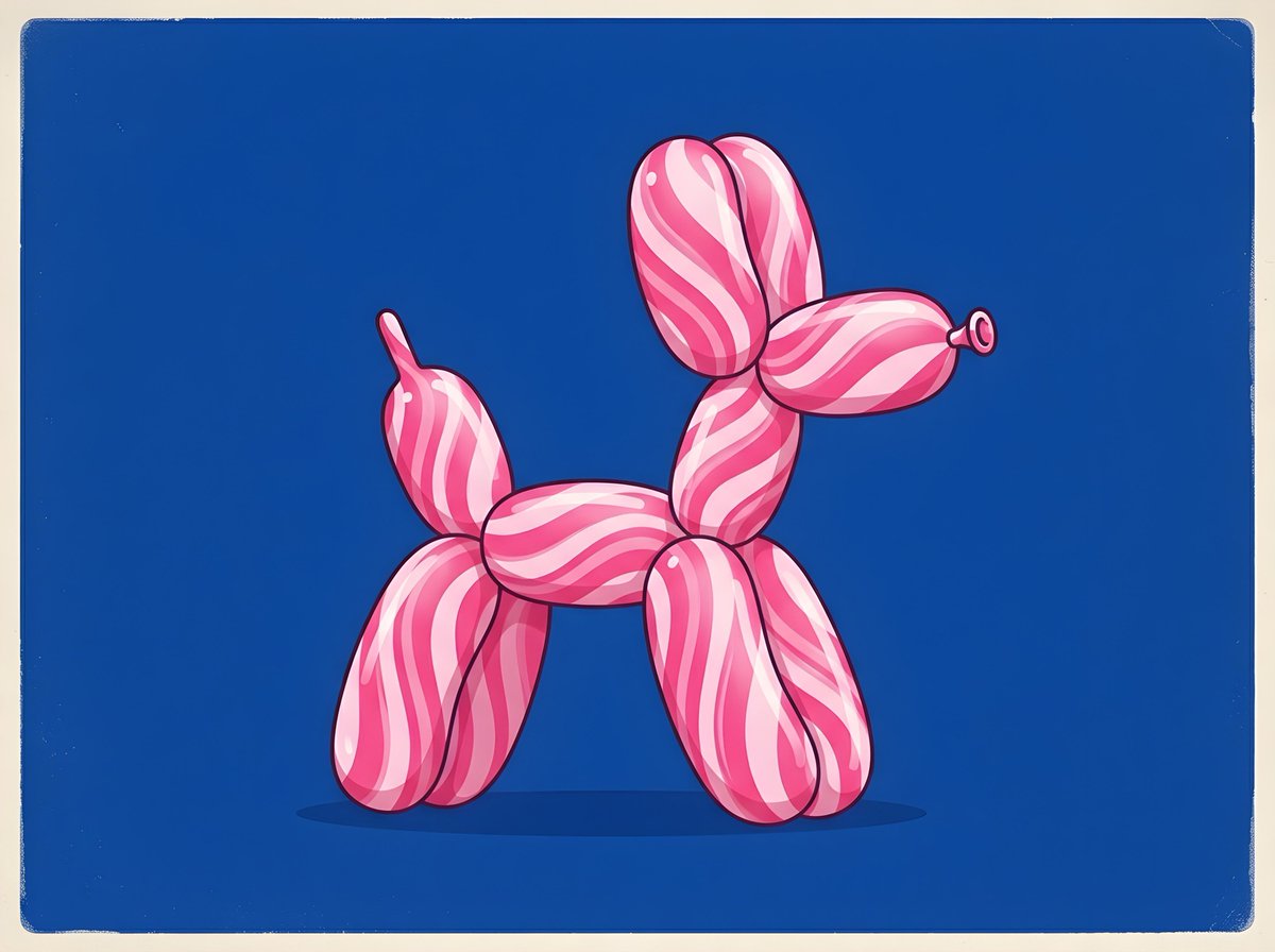 Nano Banana Pro AI image example generated with this reusable CDance AI prompt: A prompt for Nano Banana 2 to generate a retro minimalist illustration of a balloon dog. It specifies the material (glossy pink and white…