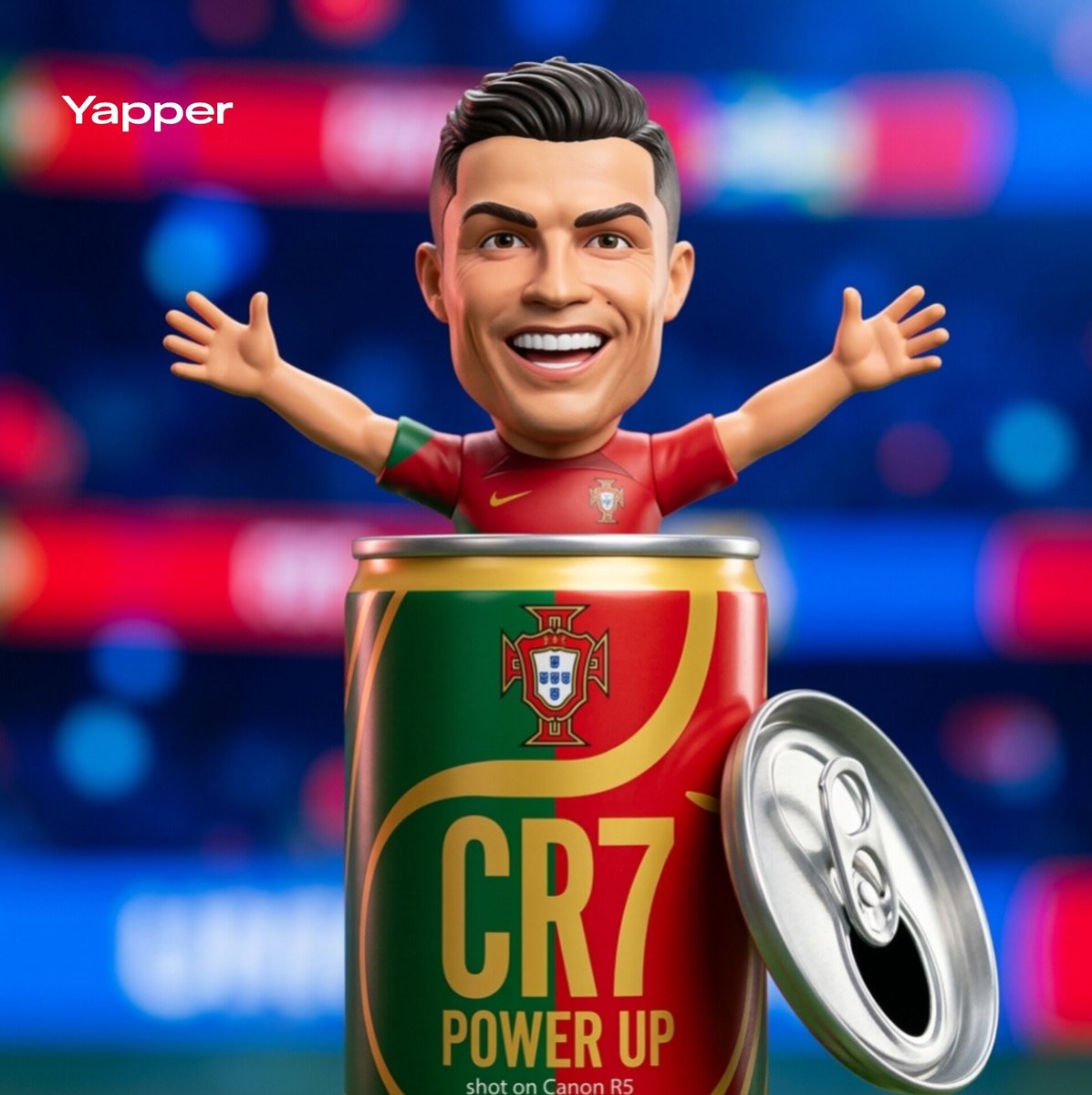 Nano Banana Pro AI image example generated with this reusable CDance AI prompt: A prompt for generating a stylized football figurine or character, based on an uploaded image, popping out of a giant opened energy drink…