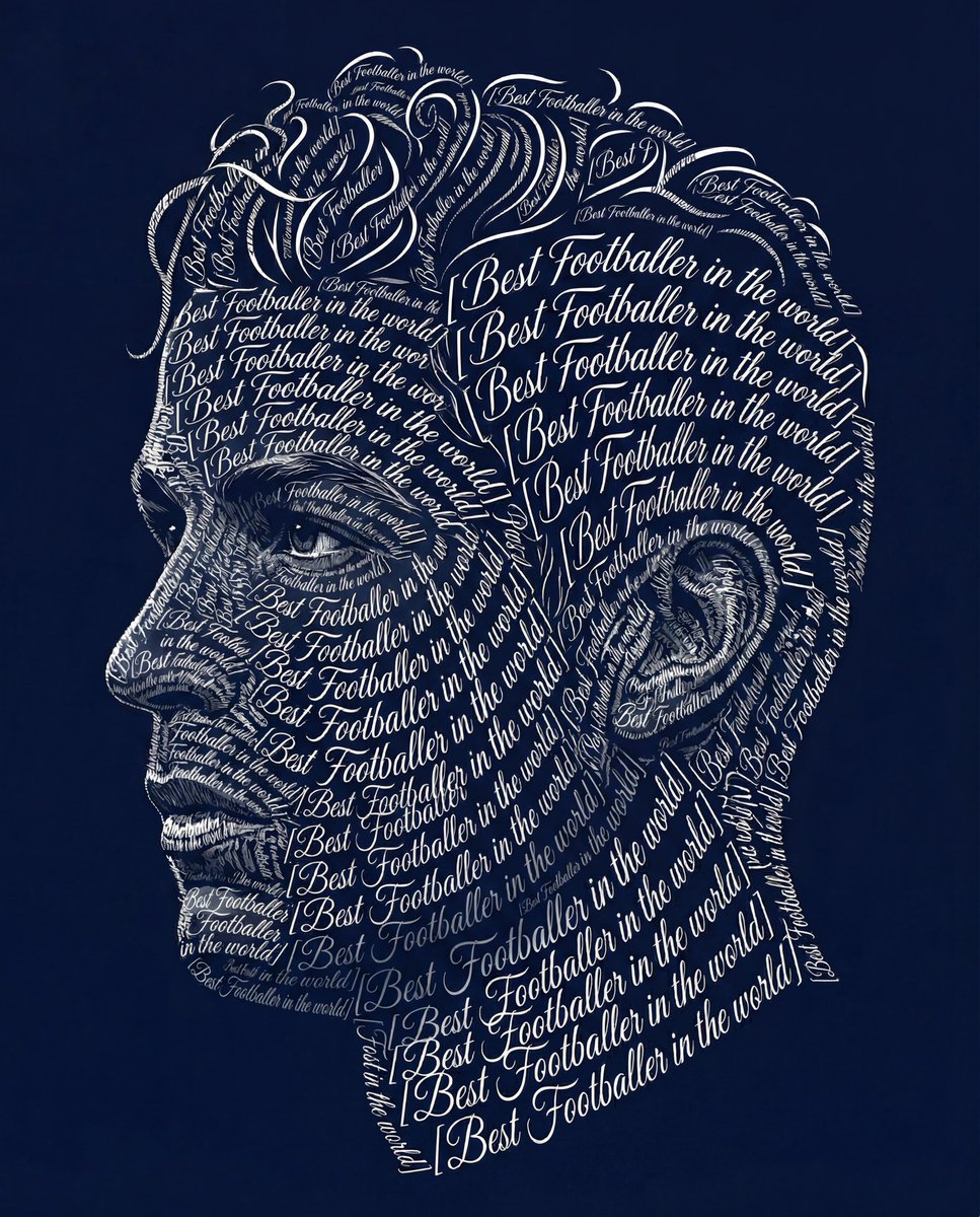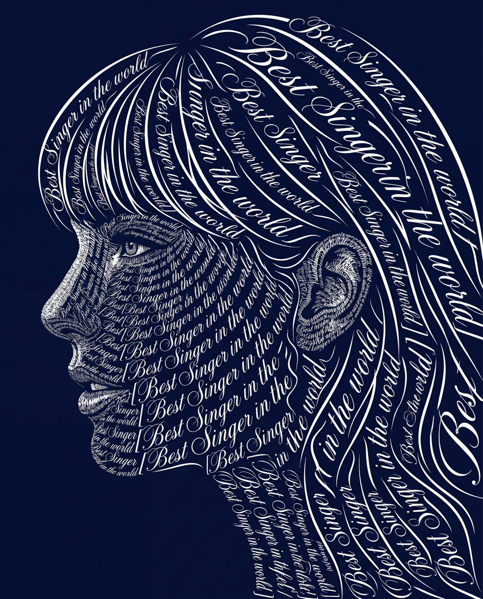 Nano Banana Pro AI image example generated with this reusable CDance AI prompt: A prompt for creating a vector art profile portrait composed entirely of repeated calligraphic text based on a reference photo.