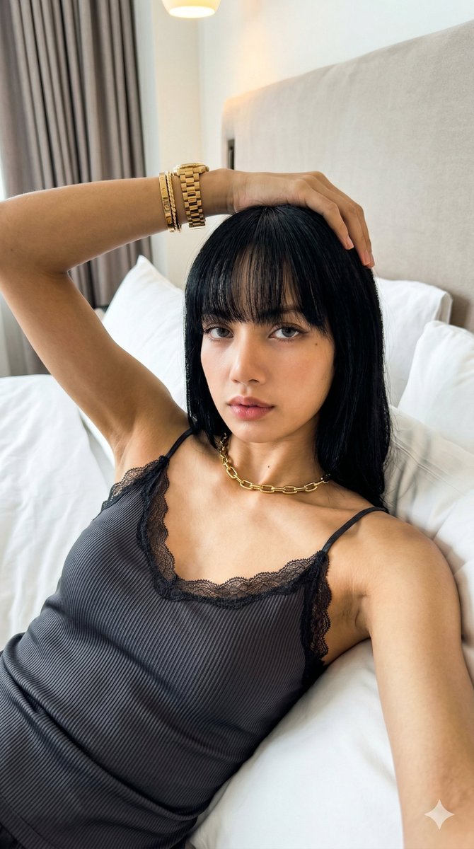 A detailed JSON prompt designed for Gemini Nano Banana 2 to generate an ultra-photorealistic, candid selfie of Jisoo from BLACKPINK in a luxury bedroom setting, emphasizing natural skin texture and high-resolution details, mimicking an iPhone 15 Pro Max front-facing camera aesthetic.