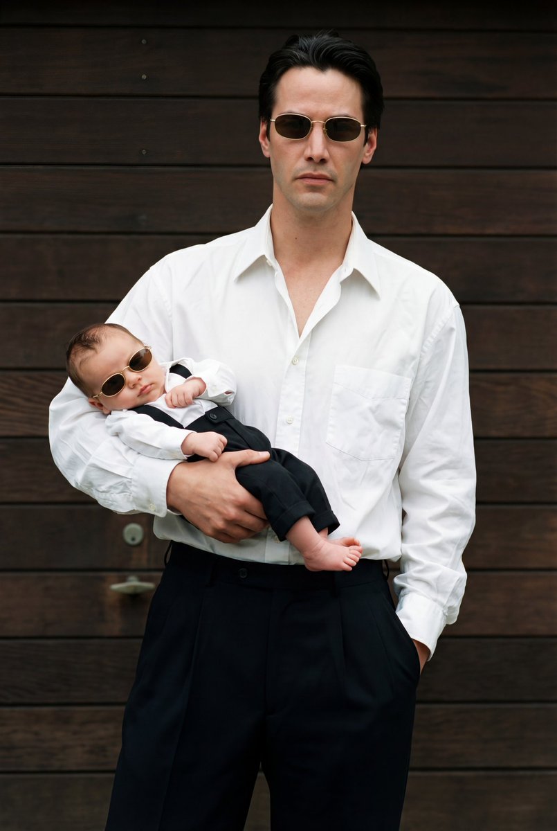 Ultra-Realistic 90s Old-Money Father and Baby Portrait