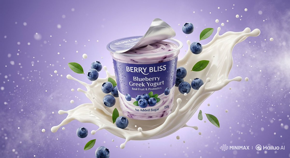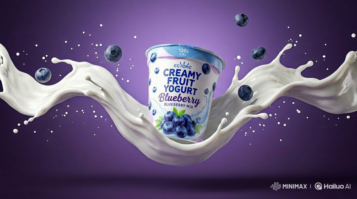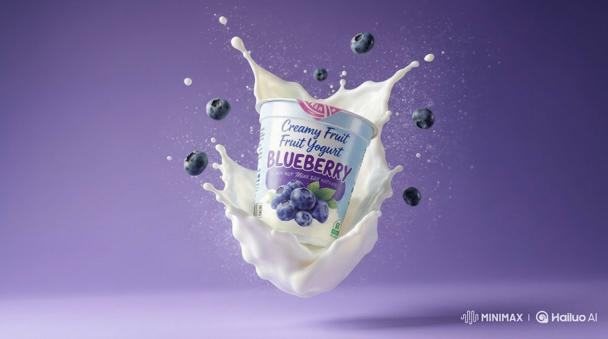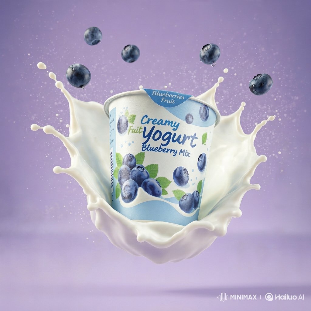 Nano Banana Pro AI image example generated with this reusable CDance AI prompt: A prompt for Nano Banana 2 to generate ultra-realistic commercial product photography of a blueberry yogurt cup floating mid-air,…