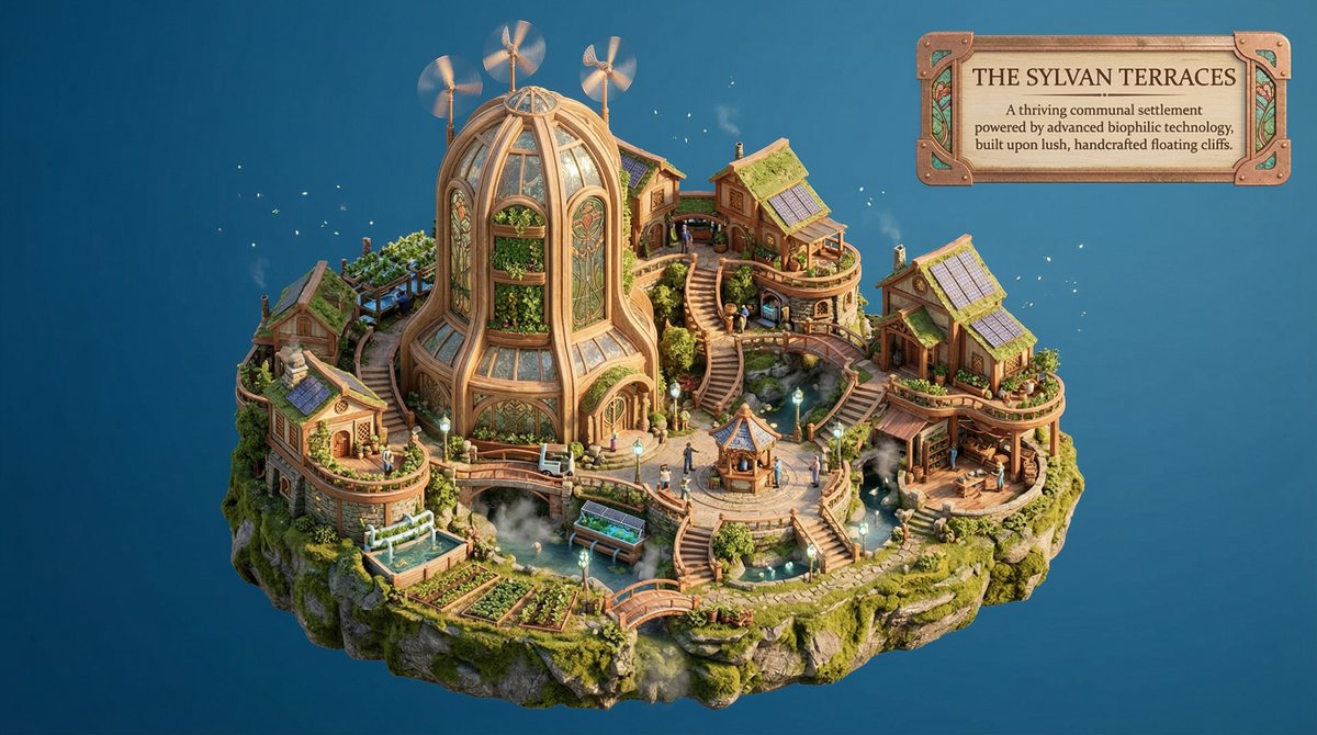 WHIMSICAL MONO-PUNK FLOATING MINIATURE DIORAMA PROMPT (Automatic Background Optimization, Smart Micro-Detail System, Procedural Activity Layer, Natural Irregularity Layer, Atmospheric Depth Layer, Procedural Scene Generator, Procedural Prop Generator, Procedural Architecture Generator, Procedural Lighting & Atmosphere Generator, Procedural Character & Population Generator, Procedural Diorama Base Generator) VARIABLE GUIDE GLOBAL_COMPLEXITY = Possible values: 'low','medium','high','ultra'. Controls density of buildings, props, characters, and environmental detail. If blank choose randomly between 'medium' and 'high'. PUNK_STYLE = If PUNK_STYLE is empty, then one style is randomly selected from LIST_OF_PUNK_STYLES, otherwise what is in the PUNK_STYLE variable is chosen LIST_OF_PUNK_STYLES = Steampunk, Dieselpunk, Atompunk, Cyberpunk, Biopunk, Nanopunk, Solarpunk, Decopunk, Clockpunk, Coalpunk, Raypunk, Stonepunk, Sailpunk, Cassettepunk, Teslapunk, Mythpunk, Sandalpunk, Oceanpunk, Frostpunk, Junglepunk, Desertpunk, Gothicpunk, Ironpunk, Crystalpunk, Rustpunk, Vaporwavepunk, Neonpunk, Skypunk, Aquapunk, Arborpunk, Astropunk, QuantumPunk, Mechanopunk, Technopunk, Retrocomputingpunk, Cattlepunk, Hopepunk SUBSTYLE = If specified use exactly. If set to none disable. If blank infer logically from PUNK_STYLE. TECHNOLOGY_LEVEL = If specified use exactly. If set to none disable. If blank infer from PUNK_STYLE. ENVIRONMENT = If specified use exactly. If set to none disable. If blank infer logically from active layers. CULTURE = If specified use exactly. If set to none disable. If blank infer culturally appropriate framework. PROCEDURAL_SCENE_GENERATOR = 'on' PROCEDURAL_PROP_GENERATOR = 'on' PROCEDURAL_ARCHITECTURE_GENERATOR = 'on' PROCEDURAL_LIGHTING_ATMOSPHERE_GENERATOR = 'on' PROCEDURAL_CHARACTER_POPULATION_GENERATOR = 'on' PROCEDURAL_DIORAMA_BASE_GENERATOR = 'on' FOCAL_INTEREST_LAYER = off MATERIAL_COHESION_LAYER = 'on' VISUAL_CLARITY_OPTIMIZER = 'on' MICRO_LIFE_LAYER = 'on' COMPOSITION_ENGINE = 'on' EDGE_DEFINITION_LAYER = 'on' COLOR_HARMONY_LAYER = 'on' DIORAMA_CRAFTSMANSHIP_LAYER = 'on' PSG LAYER Implement only if PROCEDURAL_SCENE_GENERATOR='on'. Generate core scene structure using: LANDSCAPE_STRUCTURE (floating island, cliff terraces, canyon basin, harbor cove, forest clearing, mountain ridge, giant tree canopy, desert oasis, ice shelf, volcanic ridge) SETTLEMENT_TYPE (village, harbor town, trading port, monastery complex, research outpost, fortress town, sky dock, industrial district, hidden enclave) INFRASTRUCTURE_ELEMENTS (bridges, windmills, rail lines, cable lifts, aqueducts, airship docks, solar arrays, reactor towers, waterwheels) CIVILIAN_ACTIVITY (market trading, fishing, cargo loading, harvesting, machine repair, patrol movement, festival gathering, workshop crafting) MICRO_NARRATIVE (delivery arrival, festival beginning, storm approaching, caravan arrival, wildlife encoun